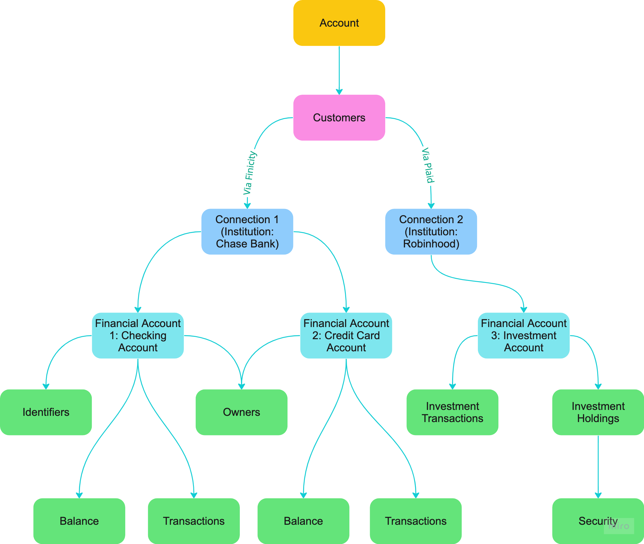 Financial Account -- Financial accounts include a checking account, savings account, 401k, IRA, credit card account, etc. A single connection can have multiple financial accounts, and individual accounts may support different sets of products. For example, credit card accounts don't support identifiers (aka routing and account numbers).