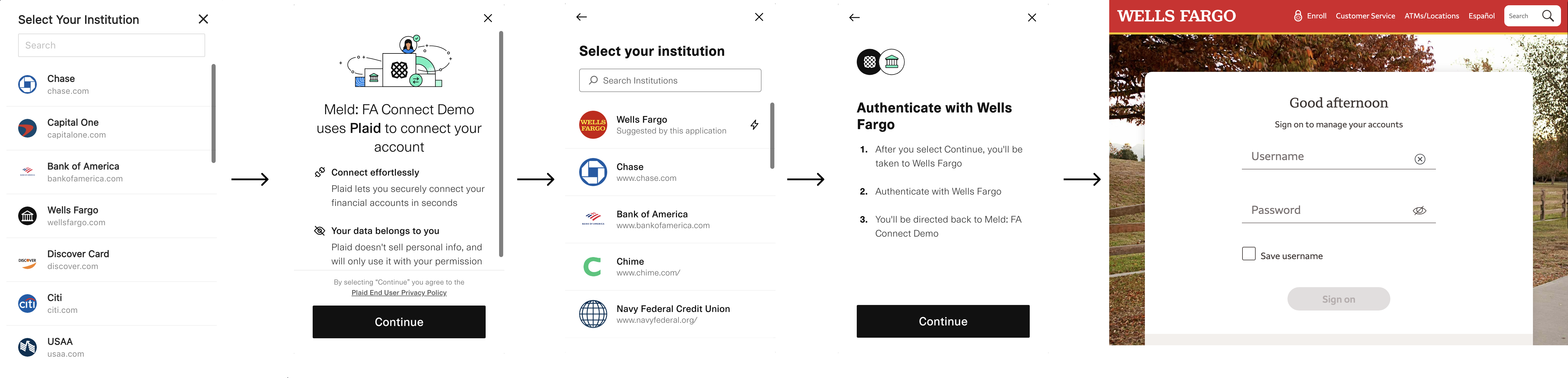 Your customers flows will depend on the service provider selected and type of institution connection offered. There are two types of connections that service providers offer: OAuth and Standard. OAuth connections tend to be higher fidelity but require a pop-out to the bank's website for customer authentication. Sample flows are added for reference and expected behavior.